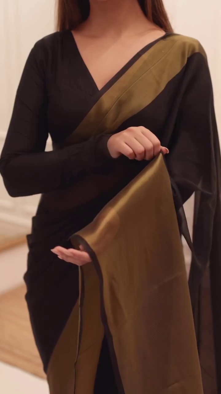 🖤 Elegant Black and Olive Satin Silk Saree for Women 🖤