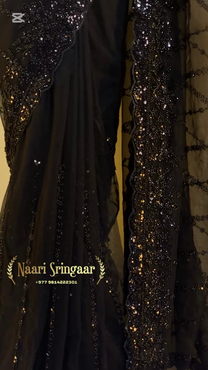Be the first to review “Black Organza Saree With Beaded Geometric Embroidery”