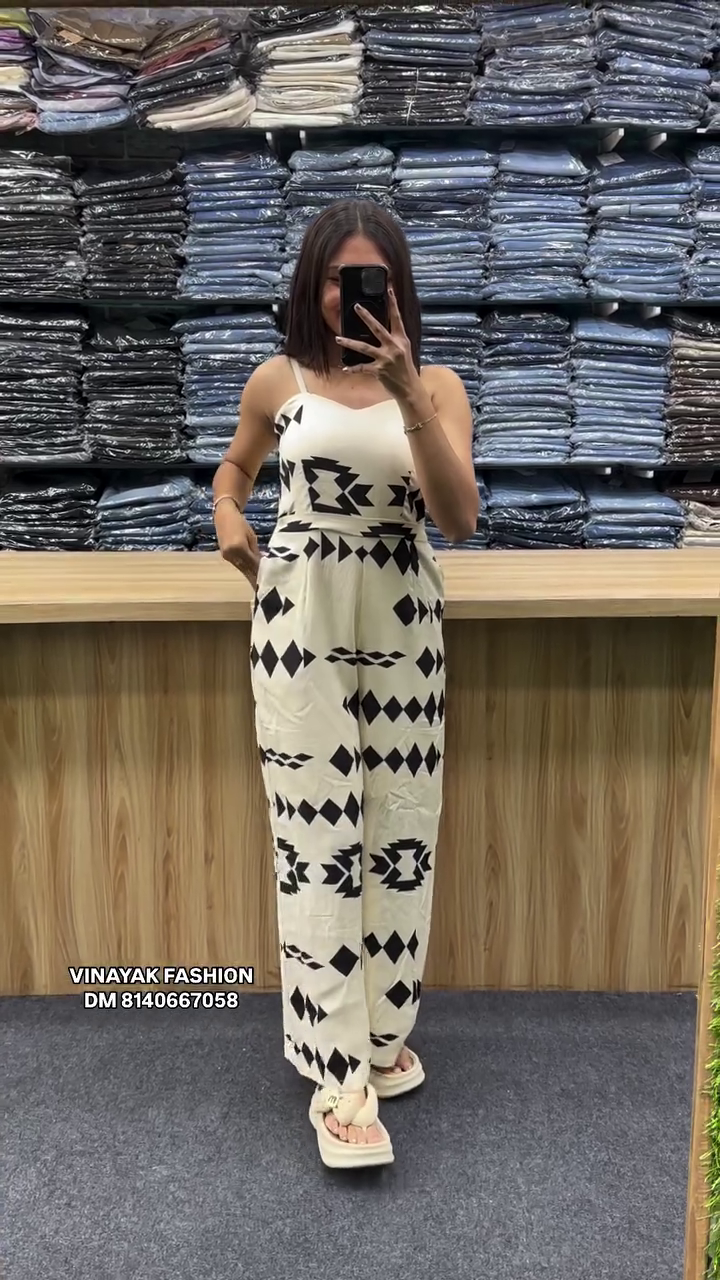 printed summer jumpsuit /Sleevless / Full length/Polester Fabric /Round Neck