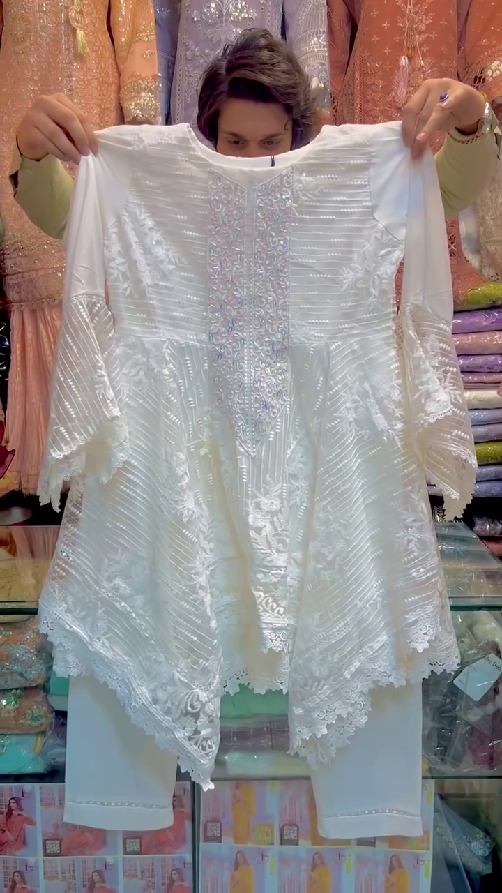 White chiffon kameezes with intricate embroidery are a popular choice for both Pakistani and Indian wedding attire. These garments combine traditional elegance with modern design, making them suitable for various occasions, including weddings, Eid celebrations, and formal events.