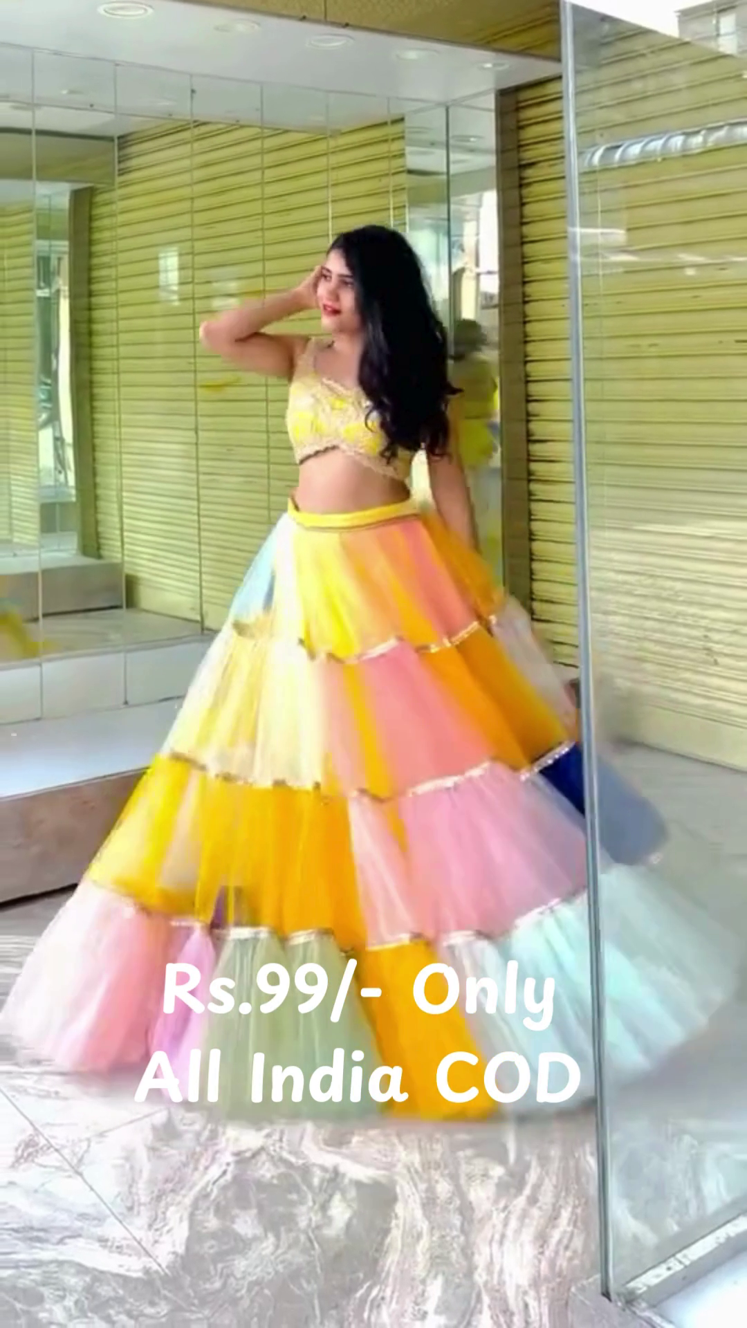 A multi-color frill lehenga paired with a yellow blouse is a stunning combination that offers a vibrant and playful look. Here’s a breakdown of the ensemble: