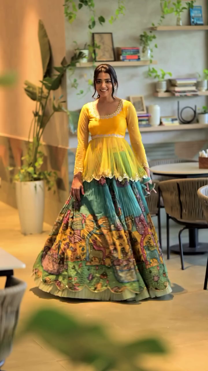 Be the first to review “NEW STYLISH HEVY CHINON KALAMKARI PRINTED LEHENGA KOTI & FRILL & SEQUENCE WORK”