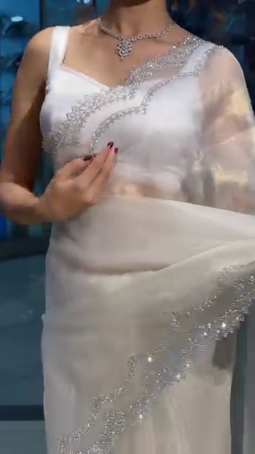 Weddings: This saree is perfect for weddings, especially as a bride’s second outfit, a bridesmaid’s dress, or as a guest. The sparkling diamond cut work adds a touch of glamour and sophistication.