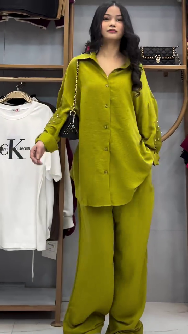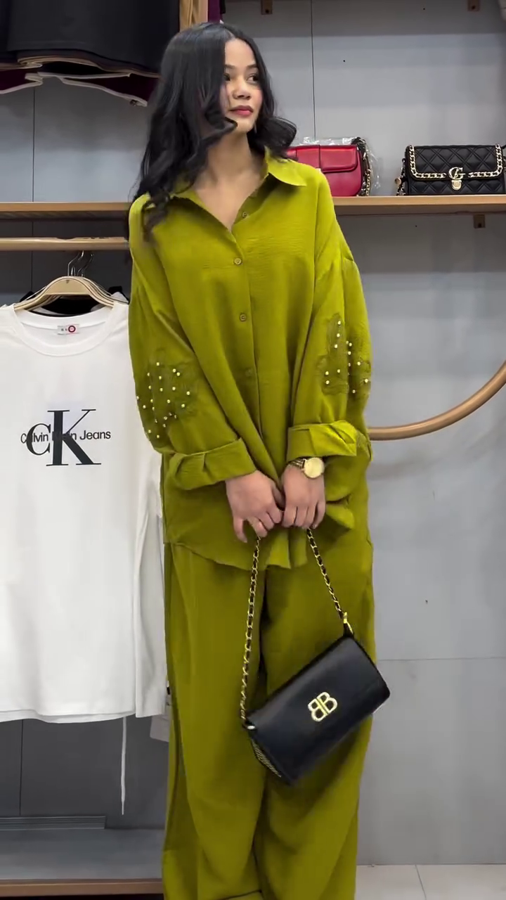Vibrant Green Hue: Embrace the trendy green shade with this chic ensemble.