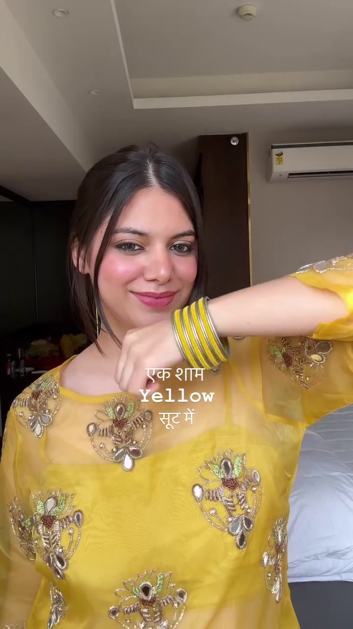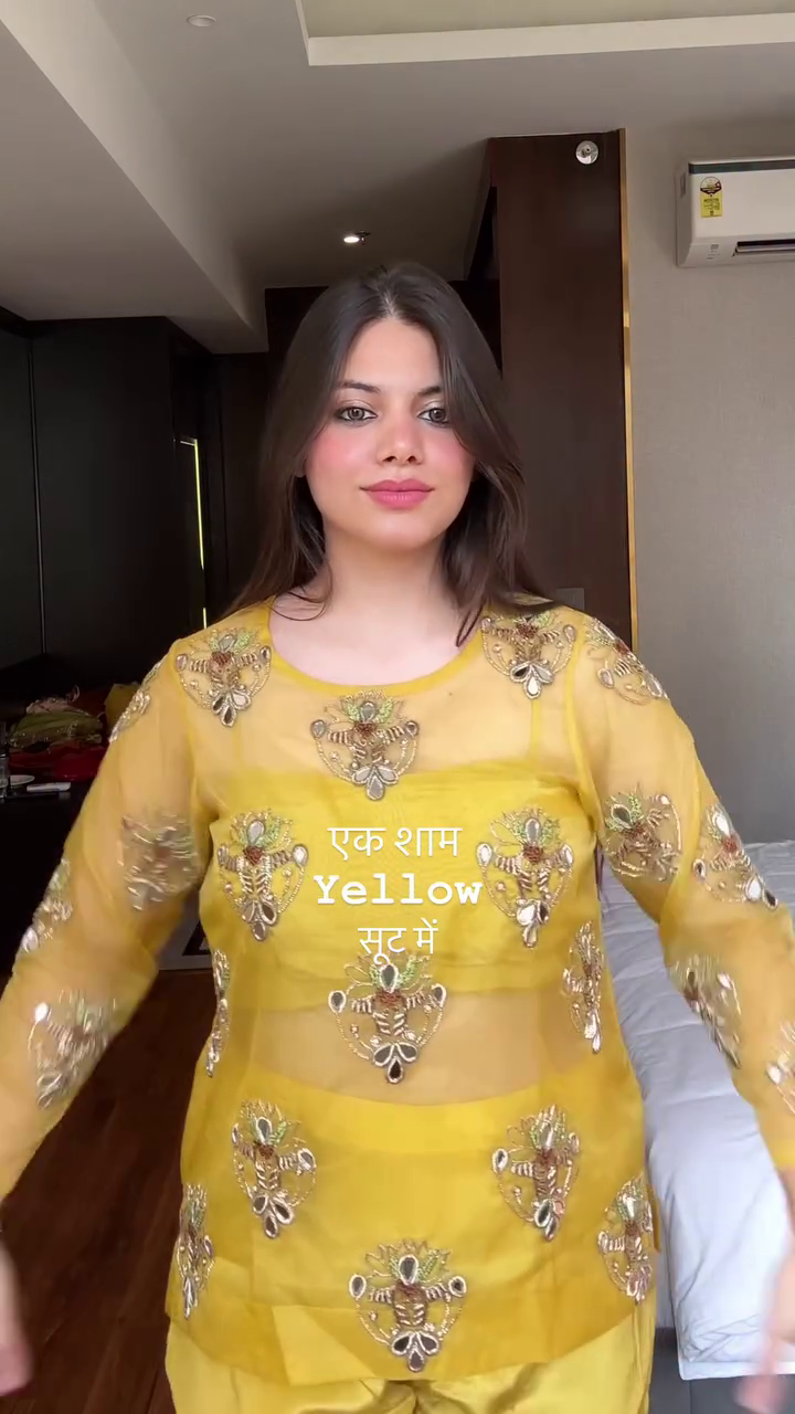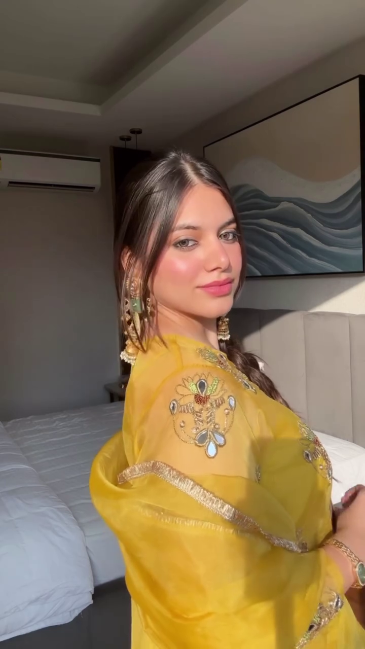 Top: Elegant yellow top with beautiful embroidery work, adding charm and festive appeal.