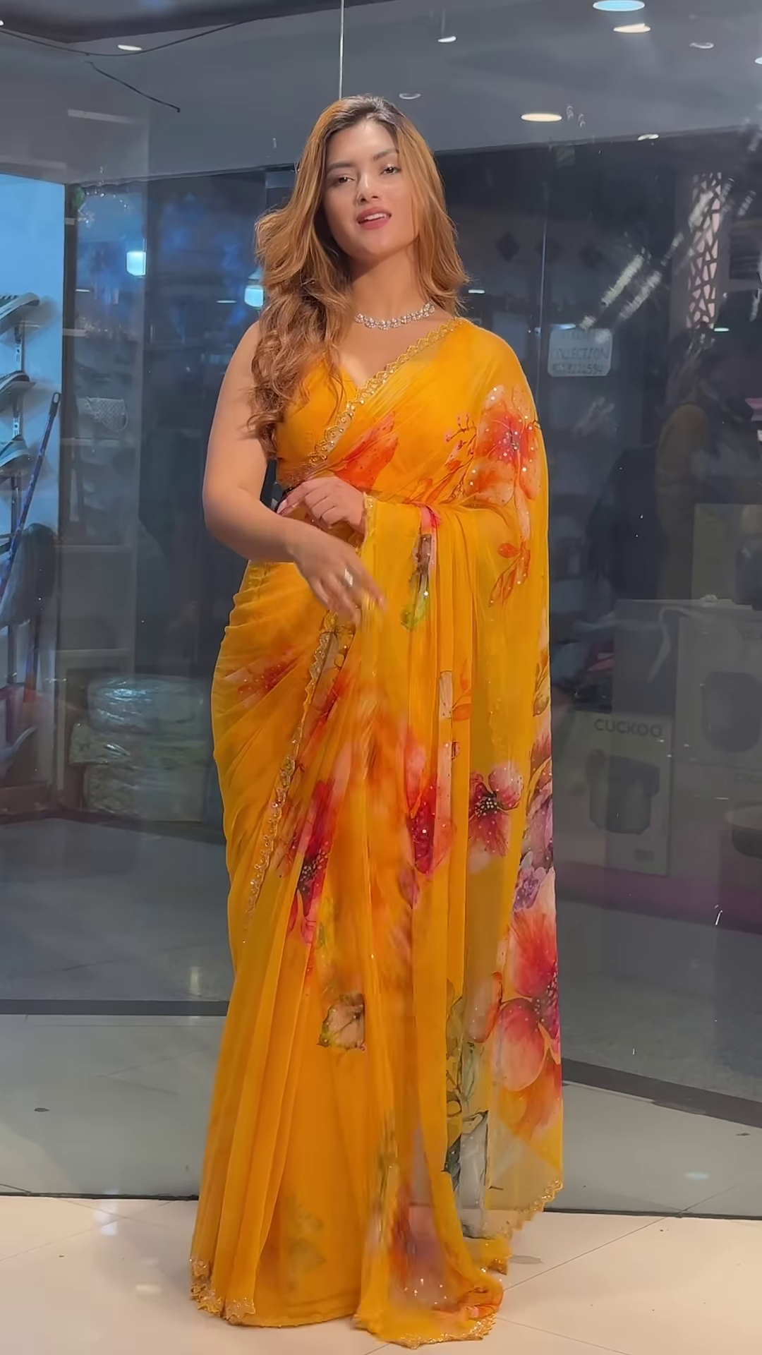 Be the first to review “Yellow Chiffon Printed Saree”